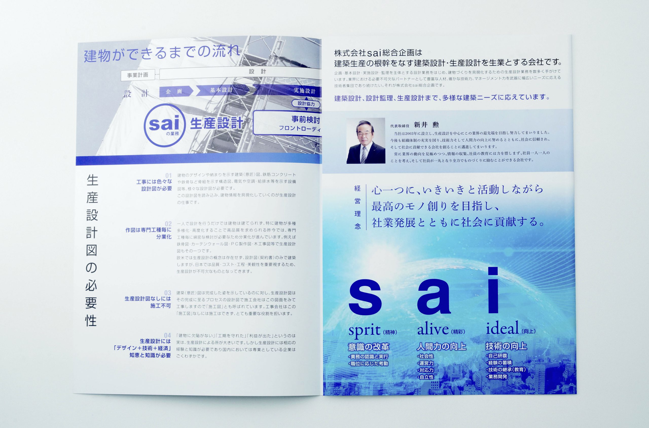 建築企業の会社案内パンフレット・見開きデザイン